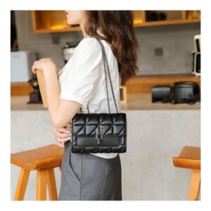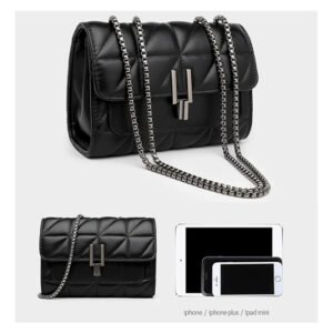 Stylish and durable PU leather crossbody bag with metal chain strap. Lightweight, odor-free, and versatile for various occasions. Ideal gift for fashion-conscious individuals.